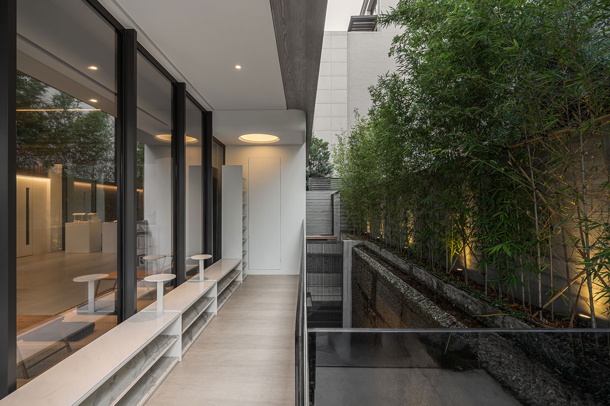 此當代宗教建築裡,配合建物清水混凝土粗曠的質地,將大量的實木帶入室內之中,帶來溫暖與質樸的感受,與藏傳佛教中強調內觀與冥想的理念相呼應。無論是視覺、聽覺、觸覺、味覺還是嗅覺,都在這裡找到了共鳴。